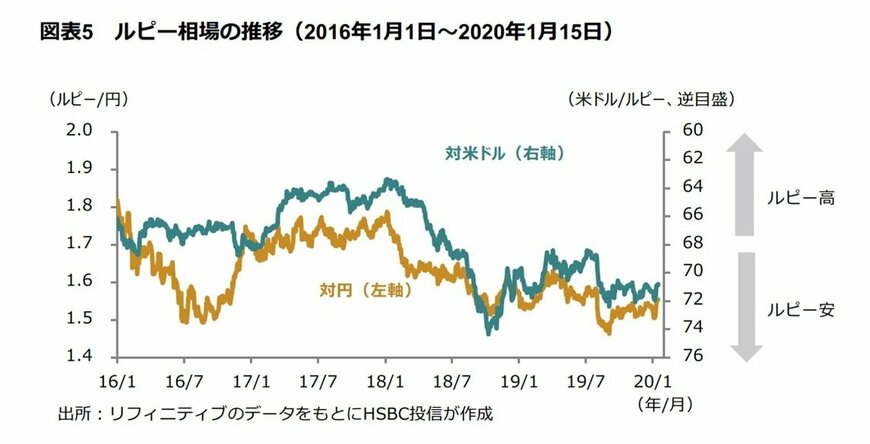 インドルピーは昨年9月以降一進一退