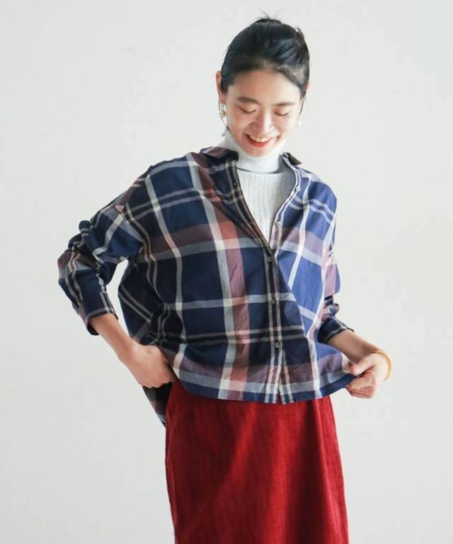 あたたかみのある冬のチェック柄は、春らしい爽やかなカラーリングにシフトチェンジ。羽織りとしてもニットのインナーとしても着回しできるワイドシャツは、一着は持っておきたいアイテムです。