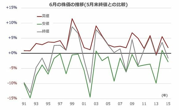 さて、皆さんは6月の株式相場にどのような印象を持っているでしょうか。6月は何となく、決算発表疲れで一段落のような、比較的静かな雰囲気を思い浮かべるかもしれません。しかし、過去の6月相場を振り返ると、売り買いが交錯する特徴があります。値動きも意外に激しいと言えるでしょう。