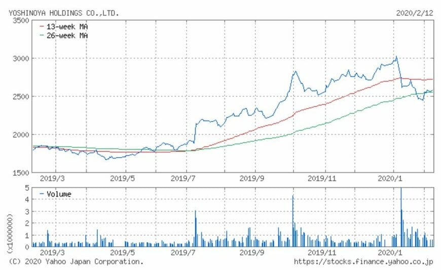 シリーズでお伝えしている「注目小売店月次実績」。今回は牛丼チェーン店「吉野家」他を運営する吉野家HD(9861)の2020年1月の月次動向及び過去実績、また過去1年の株価動向について振り返ってみましょう。