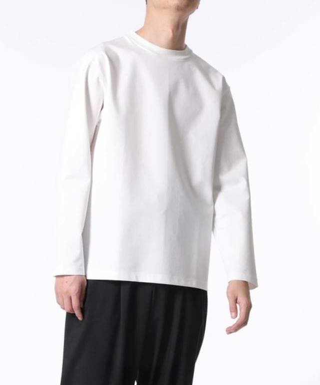 通常のコットン素材にはない高級感を演出できるのは、〈ノリタケ〉のカットソー。素材にポリエステルを混ぜ、さらにポンチ生地で編みたてることによって、ハリとコシを兼ね備えた上品な質感に。
