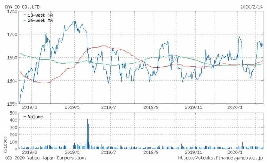 同社の株価は概ね1,600-1,700円間でレンジ相場を形成しています。1月前半にレンジ相場を上方ブレイクする値動きを見せましたが反転し、1月後半にはレンジ相場の下限にタッチするまで下落しました。しかし2月に入り再度上昇しており、現在はレンジ相場上限で取引が行われています。
