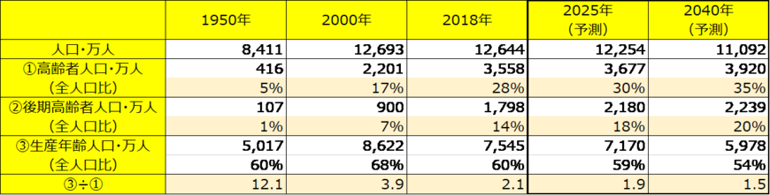2025年よりも更に深刻なのが、2040年問題です。2040年には、第二次ベビーブームに生まれた「団塊ジュニア世代」が高齢者(65歳以上)になり、日本の高齢者人口が約4,000万人とピークになるとされる年です。65歳以上の割合は35%、75歳以上の割合は20%と予想されています。