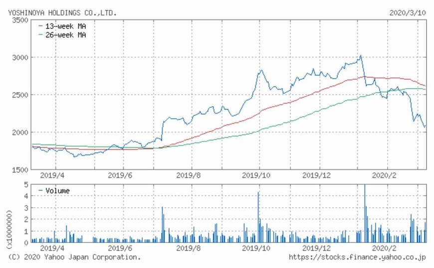 シリーズでお伝えしている「注目小売店月次実績」。今回は牛丼チェーン店「吉野家」他を運営する吉野家HD(9861)の、2020年2月の月次動向及び過去実績、また過去1年の株価動向について振り返ってみましょう。