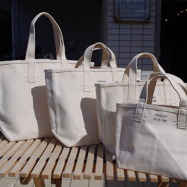 〈ツールズ〉のバッグは、一見なんてことない普通のトートバッグ。前述のビーントートのような色味はいらない。でも、ちょっとしたこだわりがあると嬉しいなんて方におすすめです。