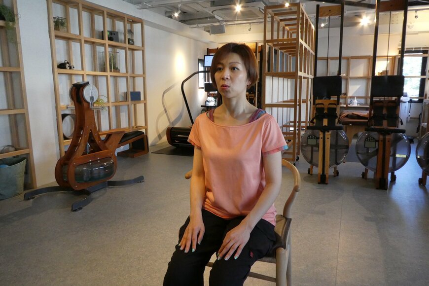 肺の周囲を囲んでいる、呼吸筋を刺激するエクササイズです。肺の膨張、収縮の幅を大きくすることによって呼吸筋を活性化させ、呼吸がスムーズにできるようになります。(写真参照)