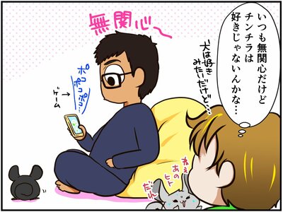 今回は祭さんのお父さんが登場。祭さんに会いに自宅を訪れたお父さん。何回か来ているはずなのに、妹さんと違ってチンチラさんたちに全く関心はなさそう。すると、そんなお父さんに小明神さんのほうが興味を示し…⁈