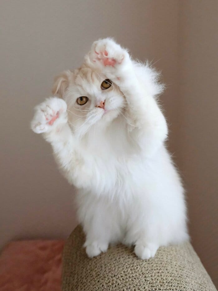 肉球を見せ、お手上げポーズで降伏する金さんは多くのフォロワーさんを虜にしているイケメン。しかし、上品そうな見た目からは想像できないほど好奇心旺盛。飼い主の(Twitter:@nao_co5)さんによれば、隙間を見つけると顔をねじ込んで覗いてきたりキッチンの水切りカゴの中で熟睡していたりと、まるで目が離せない幼稚園児のようなのだとか。