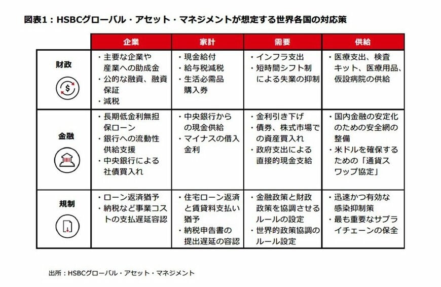 世界各国の政策当局は、実体経済において現金不足が生じれば、避けられるべき事業閉鎖や企業倒産が引き起こされかねないことを即座に認識し、そうした事態を防ぐことを最優先課題に据えている。