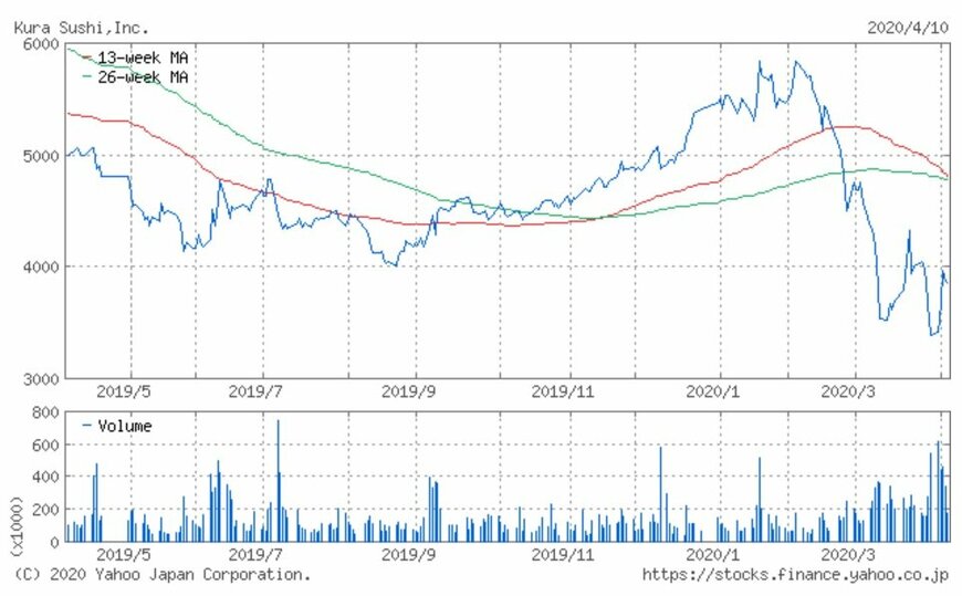 シリーズでお伝えしている「注目小売店月次実績」。今回は回転寿司チェーン店「くら寿司」を運営するくら寿司(2695)の、2020年3月の月次動向及び過去実績、また過去1年の株価動向について振り返ってみましょう。