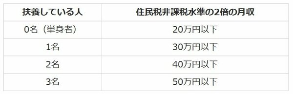 条件2の場合の、扶養している人数ごとの住民税非課税水準の2倍の月収は図表2の通りです。