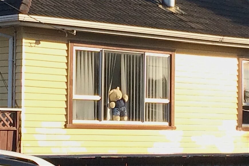 実際、いつもの散歩道を歩いていると、こっちの家の窓際にテディベア、あっちの家にもテディベア……。フェイスブックを通じて主宰者に参加を知らせた人が、道行く人々に楽しんでもらうために、自宅の通り沿いの窓際にテディベアを飾っているのです。