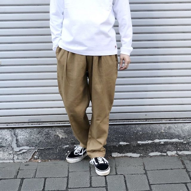 この時期、ウイルス対策の一環として洗濯は頻繁にしたいですからね。ウエストに入った2本のタックも今風のディテール。「いい感じのワイドパンツが一本欲しい」という方にもおすすめです。