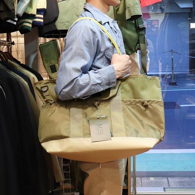 たくさんの食品や飲料を持ち運ぶなら、大きさだけなく耐久性もチェックしたい。〈M.I.S〉のマルチトートバッグはボディにコーデュラナイロン、底部にはターポリンなど、強度・防水性に定評のある素材で作られているのがポイント。