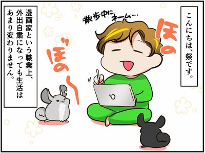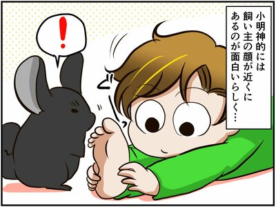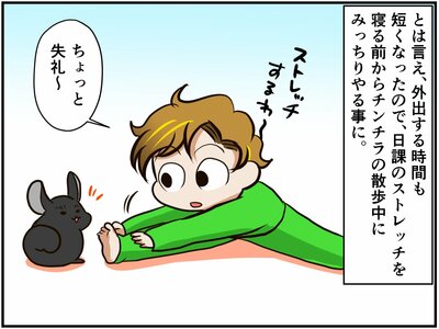 最近めっきり外出が減った祭さん。チンチラさんたちのお散歩中に、日課のストレッチを念入りにすることにしたのですが、小明神さんはそれが面白くてたまらないらしく…?