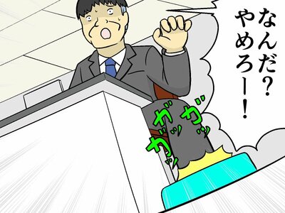 さすがに、主人公もムッときて「全員でやるのがルールなんですけど…。」と食い下がります。それでも係長は「俺は少しぐらい汚れていても気にしないんだ。」と、涼しい顔。「そういうことじゃないだろ…。」と心の中でつぶやきながら、主人公の頭の中で、いつものごとく妄想スイッチが入ります。