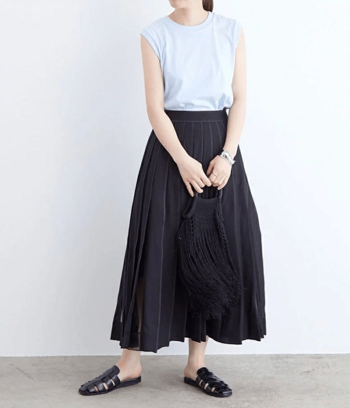 程良いボリュームで、パンツ、スカート問わずバランスが取りやすいのも嬉しいところ。カジュアルなスポサンやトングサンダルも人気ですが、雰囲気を変えてクラス感のあるサンダルを選んでみても良いかも。