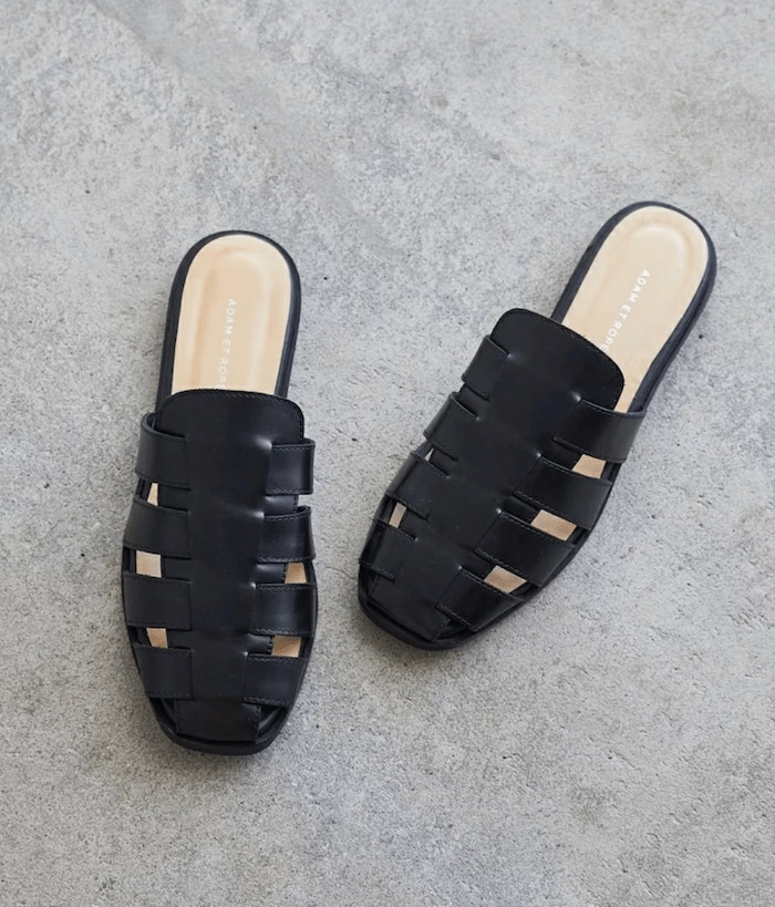 スーパーやコンビニなどの「ちょっとそこまで」から、もちろんお出かけコーデにだって重宝。サッと履けておしゃれに見える『ADAM ET ROPE’』のレザーグルカサンダルをピックアップ。