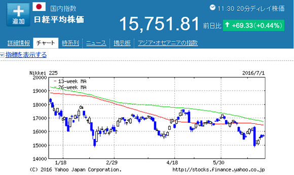 6月の散々な結果は、ザックリ言うと、前半は政府と日銀の悠長な政策スタンスに対して投資家(特に海外投資家)が愛想を尽かしたことが主要因であり、後半は英国のEU離脱を決定した国民投票の結果が主要因です。