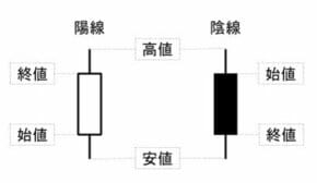 そして、終値が始値よりも高かった場合を「陽線」と言い、株価の上昇を意味し、反対に終値が始値よりも安かった場合を「陰線」と言い、株価の下落を意味します。