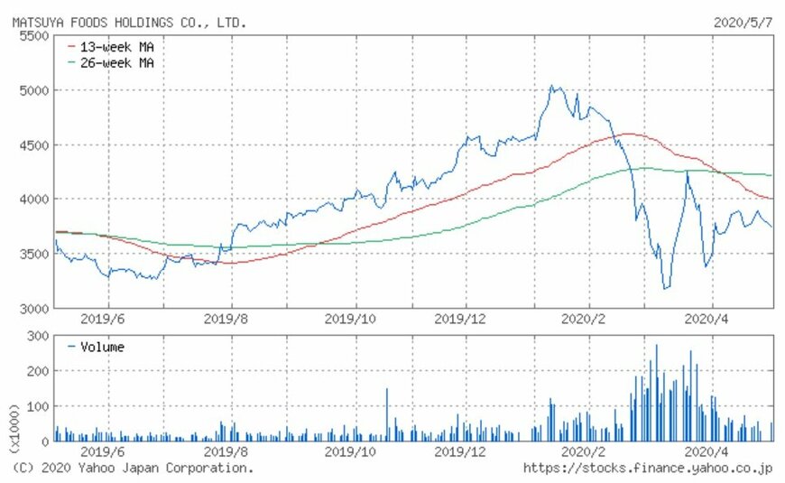 同社の株価は2019年7月から上昇が続き、2020年1月には5,130円の高値に到達しました。しかし反落し、2月後半からの世界的な株価下落を背景に3月13日には3,025円の安値を付けました。