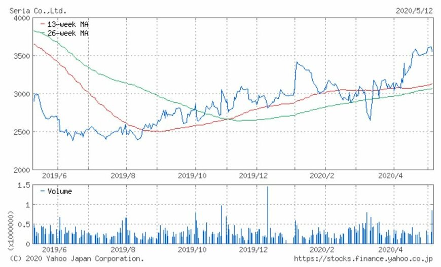 シリーズでお伝えしている「注目小売店月次実績」。今回は100円ショップ「セリア」を展開するセリア(2782)の、2020年4月の月次動向及び過去実績、また過去1年の株価動向について振り返ってみましょう。