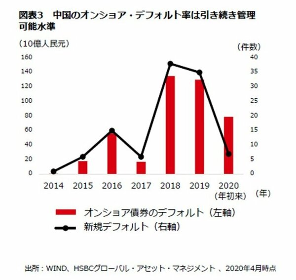 HSBC投信では、中国でもデフォルト率は上昇すると見込んでいるが、パンデミックによってデフォルトが急増するとは考えていない。とは言え、投資家が中国の債務と債務不履行水準に無関心であってよいというわけではない。