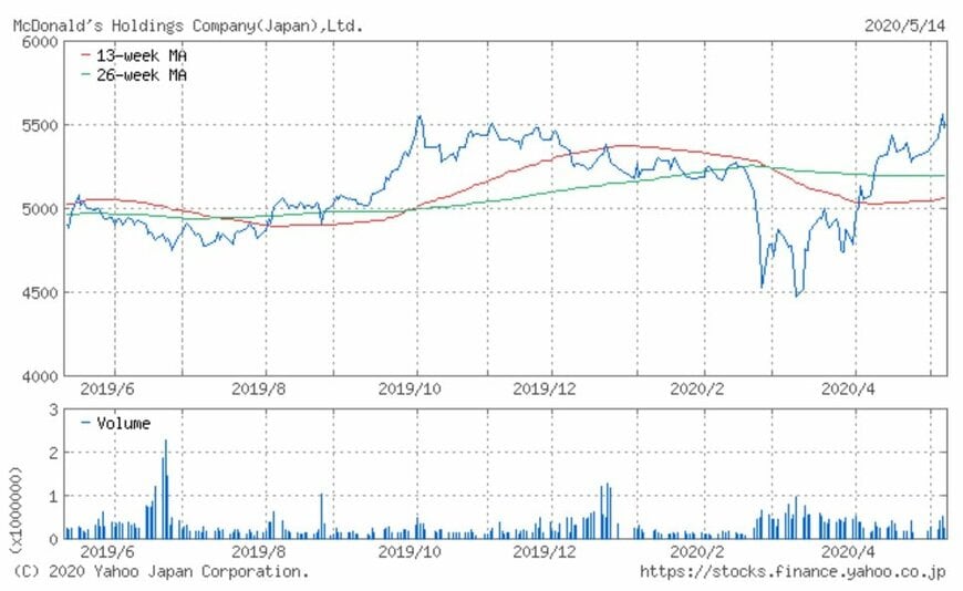 シリーズでお伝えしている「注目小売店月次実績」。国内でハンバーガーチェーン店「マクドナルド」を運営する日本マクドナルドHD(2702)の、2020年4月の月次動向及び過去実績、また過去1年の株価動向について振り返ってみましょう。