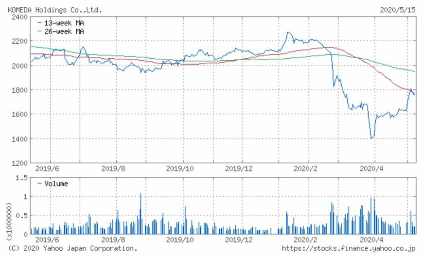 シリーズでお伝えしている「注目小売店月次実績」。今回はコーヒーチェーン店「コメダ珈琲」を運営するコメダHD(3543)の、2020年4月の月次動向及び過去実績、また過去1年の株価動向について振り返ってみましょう。