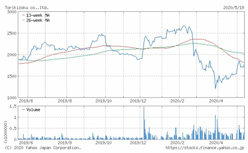 シリーズでお伝えしている「注目小売店月次実績」。今回は焼鳥チェーン店「鳥貴族」を運営する鳥貴族(3193)の、2020年4月の月次動向及び過去実績、また過去1年の株価動向について振り返ってみましょう。