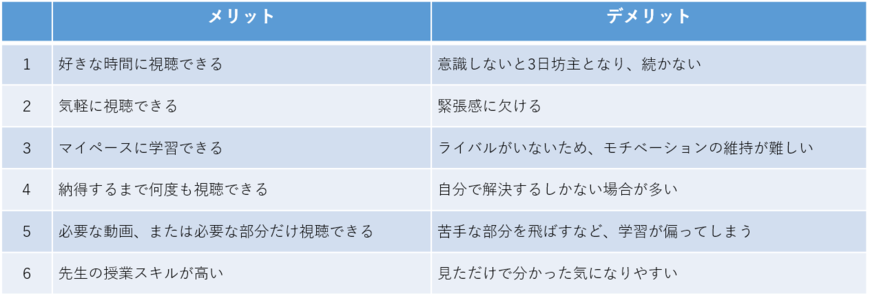 まずは映像授業のメリットやデメリットを確認しておきましょう。