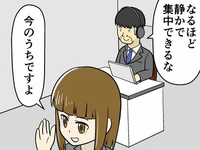 上司のそれは、思わず「初心者?」と聞きたくなるような、両手の人差し指を交互に使い、ペタペタと超低速でキーを叩くという、見事なまでの指1本タイピング!たしかに静かといえば静かですが、打ち込みの速度が遅すぎる…。「効率悪すぎるだろ…。」と心の中でつぶやきながら、主人公の頭の中で、いつものごとく妄想スイッチが入ります。
