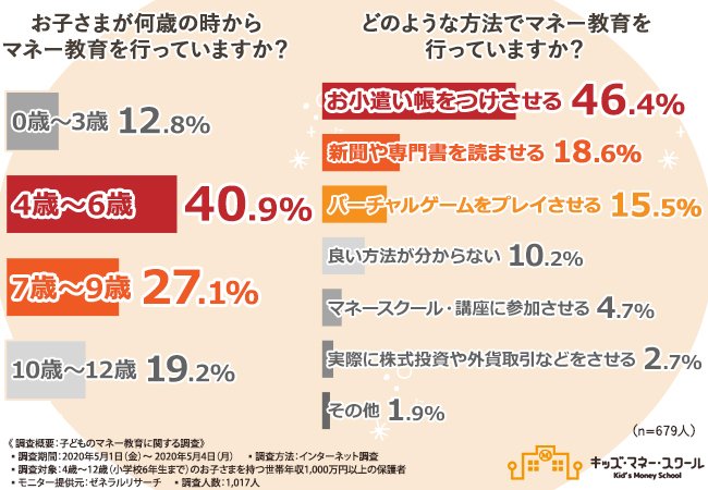 具体的にどんな方法と取り入れているのかというと、「お小遣い帳をつけさせる」が46.4%、「新聞や専門書を読ませる」が18.6%、「バーチャルゲームをプレイさせる」が15.5%となる一方で、「良い方法が分からない」と回答した親も10.2%いることがわかりました。教えたくても方法がわからずに悩む親が少なからずいるのが実情のようです。