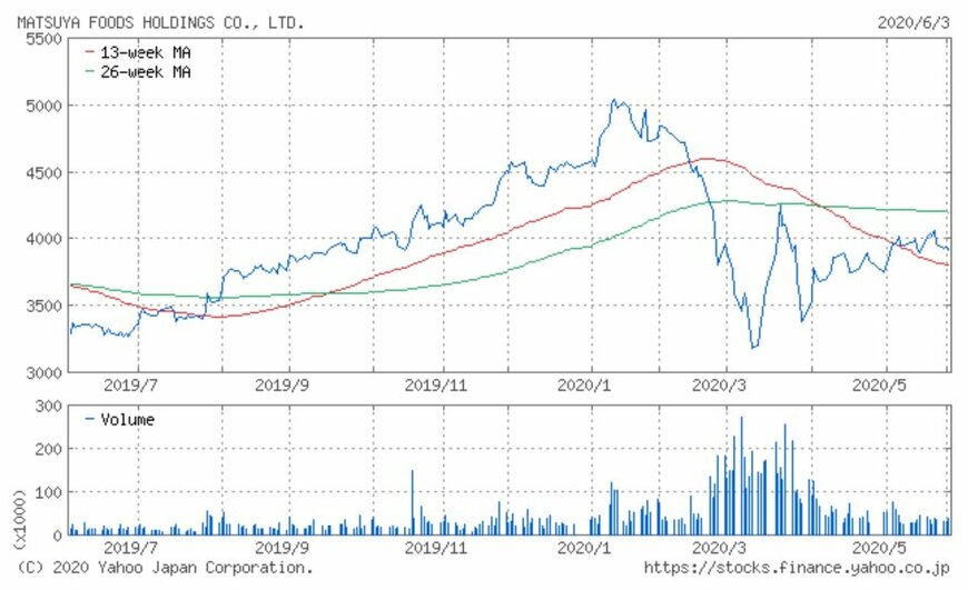 シリーズでお伝えしている「注目小売店月次実績」。今回は牛丼チェーン店「松屋」他を運営する松屋フーズHD(9887)の、2020年5月の月次動向及び過去実績、また過去1年の株価動向について振り返ってみましょう。