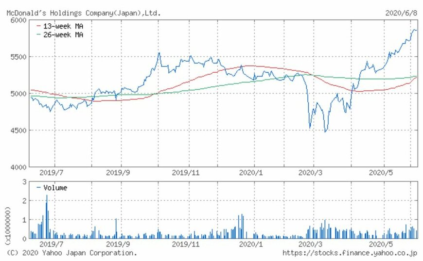 シリーズでお伝えしている「注目小売店月次実績」。国内でハンバーガーチェーン店「マクドナルド」を運営する日本マクドナルドHD(2702)の、2020年5月の月次動向及び過去実績、また過去1年の株価動向について振り返ってみましょう。
