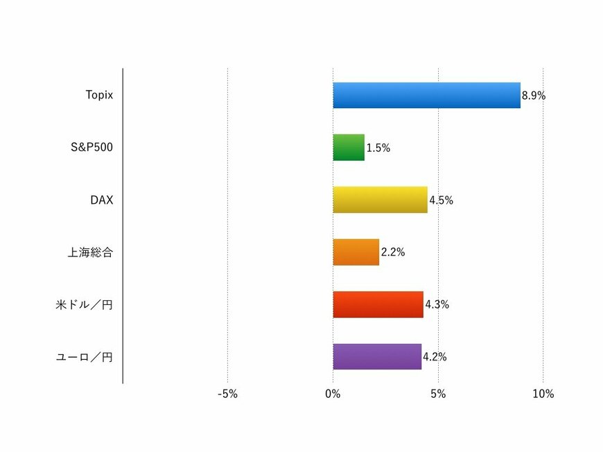 先週(7月11日-7月15日)の主要国の株式市場は全面高になりました。