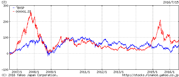 ボベスパ指数と上海総合指数は切っても切れない仲