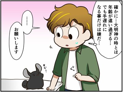 しかも最終的に自力で歯を削ることができなければ、結局手術で削ることになって、その際に使用する全身麻酔には、命の危険が伴う。小明神さんがこれ以上高齢になってからでは、さらにリスクが高くなり…。それならば、今の元気なうちに手術をしたほうがいいんじゃないか?