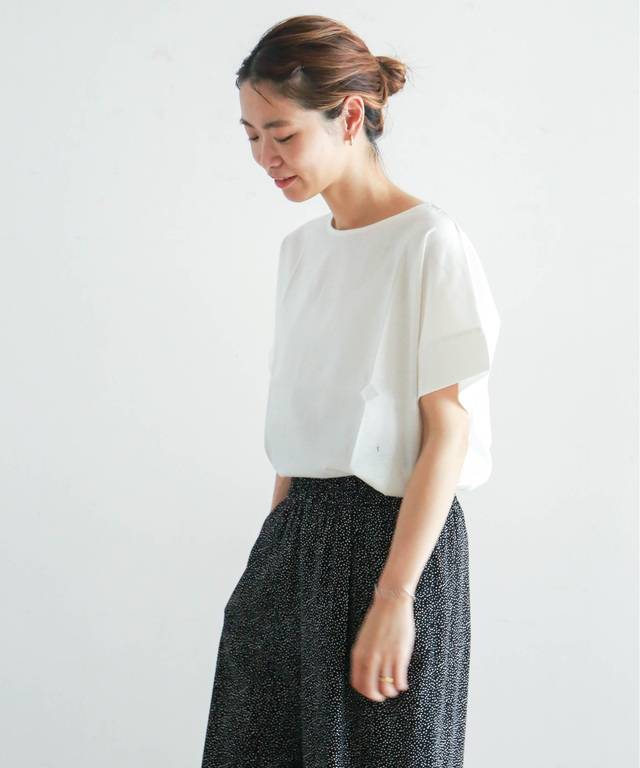 日頃シャツやブラウスを着る機会が多い方にとっても扱いやすいTシャツ。合わせるボトムも選ばないので、手持ちのアイテムの着こなしの幅も広がりますよ。
