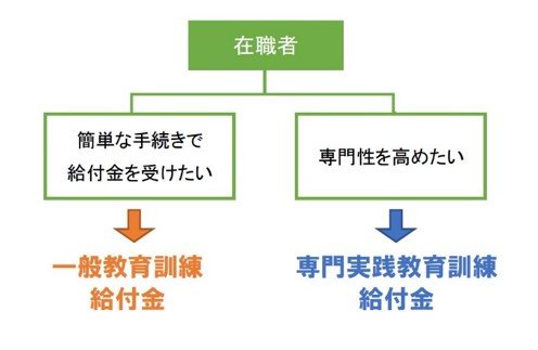在職者は教育訓練しか受けることができませんが、離職者(離職後1年以内)の場合は、どちらの訓練も受けることができるので、選択に悩みます。そこで、それぞれの特徴が分かるように図解にしてみました。