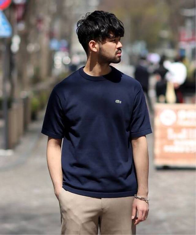 TシャツはTシャツでも大人の期待に応えてくれるのがニットT。一枚で着た時もラフになりすぎないのが利点で、〈ラコステ〉のロゴが入ることで一層クリーンな表情に。ジャケットを脱いだ際もこれなら物足りなさを感じさせません。