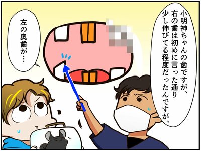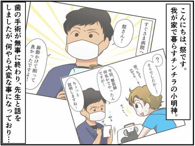 小明神さんの不正咬合の手術は無事成功。ホッと胸をなでおろす祭さんに、先生が今回の症状について詳しい説明をしてくれたのですが…。