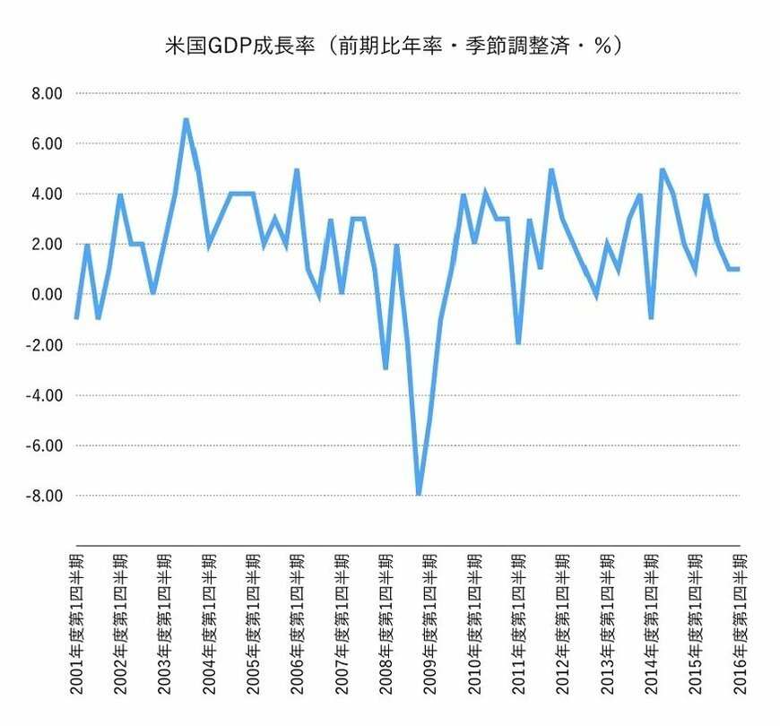 2016年1-3月期の米GDPは過去1年間で最も弱い伸び率でした。