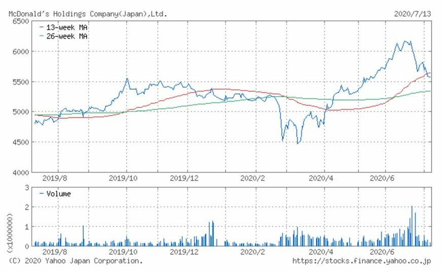 シリーズでお伝えしている「注目小売店月次実績」。国内でハンバーガーチェーン店「マクドナルド」を運営する日本マクドナルドHD(2702)の、2020年6月の月次動向及び過去実績、また過去1年の株価動向について振り返ってみましょう。