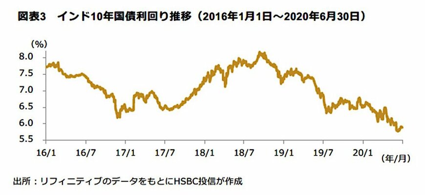 インド債券市場は、グローバル投資家にとり良好な投資機会を提供している。新型コロナウイルスによる経済的混乱が収束すれば、インド経済は再び優位性を取り戻すと思われる。インドの国債の相対的に高い利回り水準にも妙味がある。