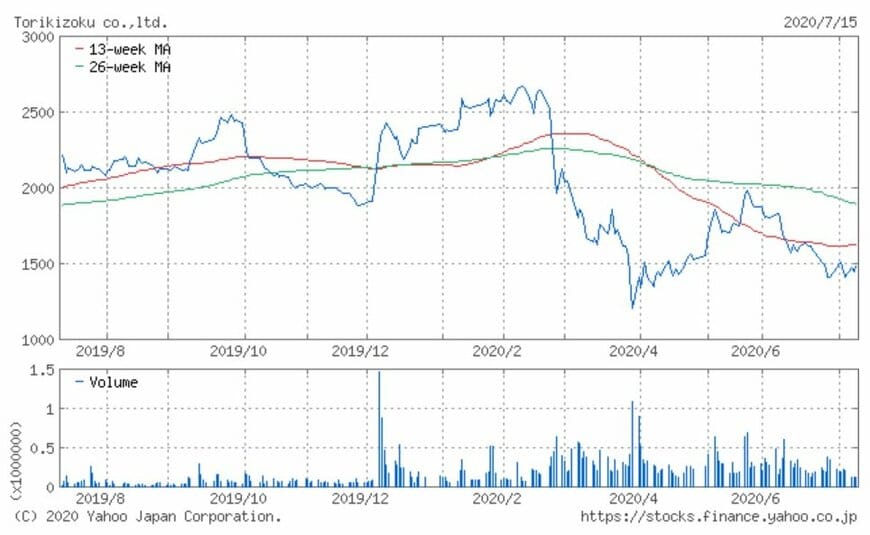 シリーズでお伝えしている「注目小売店月次実績」。今回は焼鳥チェーン店「鳥貴族」を運営する鳥貴族(3193)の、2020年6月の月次動向及び過去実績、また過去1年の株価動向について振り返ってみましょう。