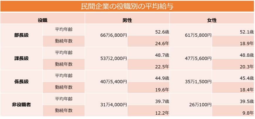 役職別の給与について、厚生労働省の「令和元年(2019年)賃金構造基本統計調査」でデータが公表されています。
