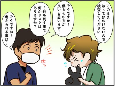 「心臓までわずか1cm」のリスクに飼い主の決断は…【チンチライフ59話】 【マンガ記事】チンチライフ! 2020.07.28 00:05 公開 執筆者祭 copy URL 目次[開く] 第59話:小明神の通院ライフ~新たな病気発覚⁈編~ 【マンガ記事】チンチライフ! つづきを読む 前回のお話 チンチライフをもっと読みたい方はこちらも 心臓までわずか1cm⁈先生の説明に祭さんは…? < 1 2 3 4 > 関連タグ #リスク 注目コンテンツ 年齢入れて5秒で見積もり!人気の医療保険ランキングをチェック[PR] 退院後の通院治療に3000円。通院保障がつけられる医療保険はこれ![PR] 【キャラつくAI】プロフィールをもとにAIがあなたをイメージして絵を描きます![PR] あわせて読みたい