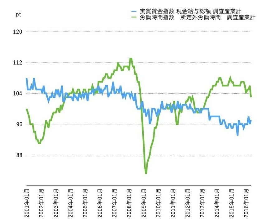 市場予想が公表される1人当たりの現金給与総額と同時に、所定外労働時間もチェックするようにしましょう。