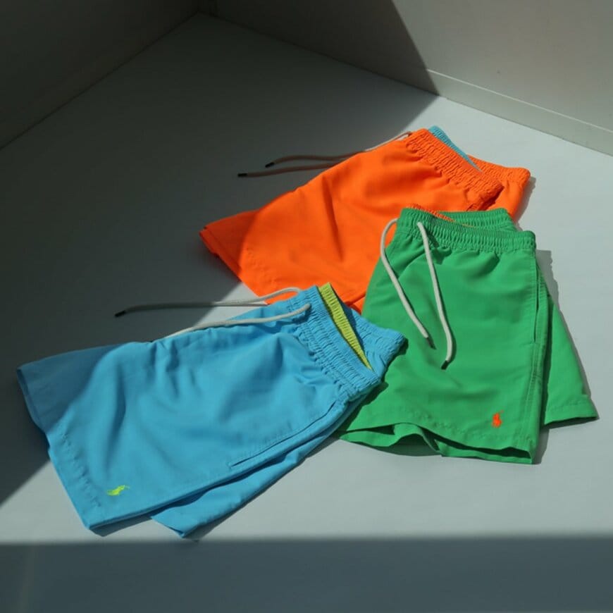 ベイクルーズストアの先行予約でも大好評だった〈ポロ ラルフローレン〉販路限定カラーのスイムショーツ。サックスブルー、グリーン、オレンジの「これぞ夏!」と言わんばかりのカラー展開で、一枚と言わず色違いで揃えたくなります!